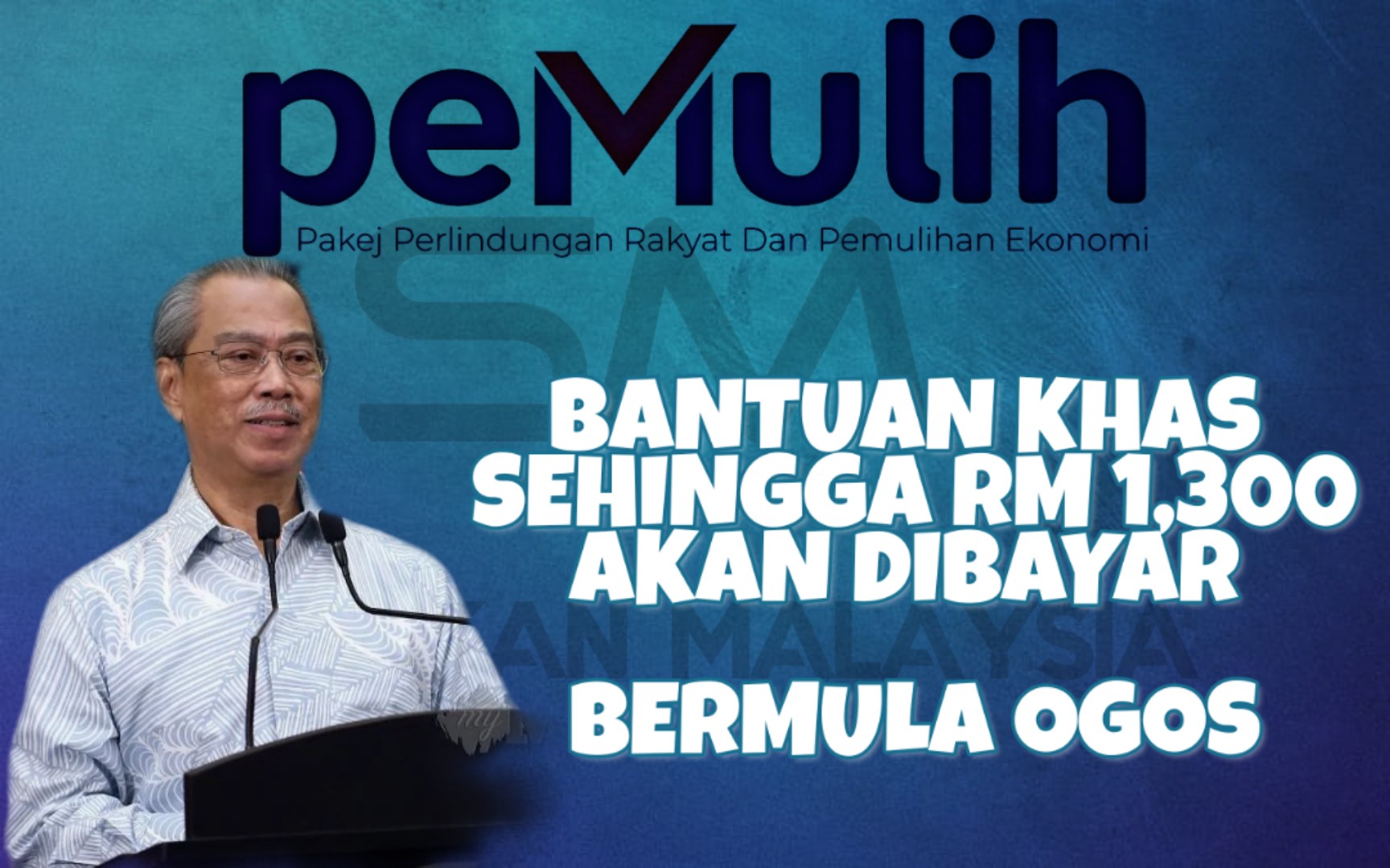 Jumlah bantuan kepada kategori isi rumah ialah berjumlah RM 1,300.